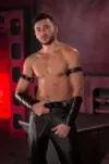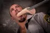 Cuffed officer Kirk Cummings ass fucked with massive dildo.