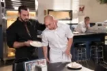 Messy 3-some for a clumsy waiter with hard cock and food!