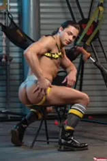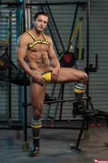 Alpha Wolfe, Devin Franco & Luca Del Rey fuck on a sling.